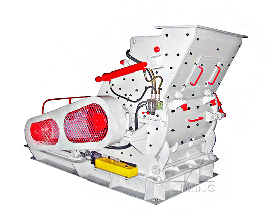 主机通过电机、三角皮带带动主轴,从而使转子旋转,锤头受到旋转时所产生的离心力向四周伸开,大块物料从进料口进入破碎腔之后,便被高速运动的锤子击碎。破碎合格的物料则由下部有缝隙的蓖条排出,不合格的则留在破碎腔内,被锤子和承击铁块反复作用,直至能够合格排出。为避免堵塞,被粉碎物料的含水量一般不超过5% 。